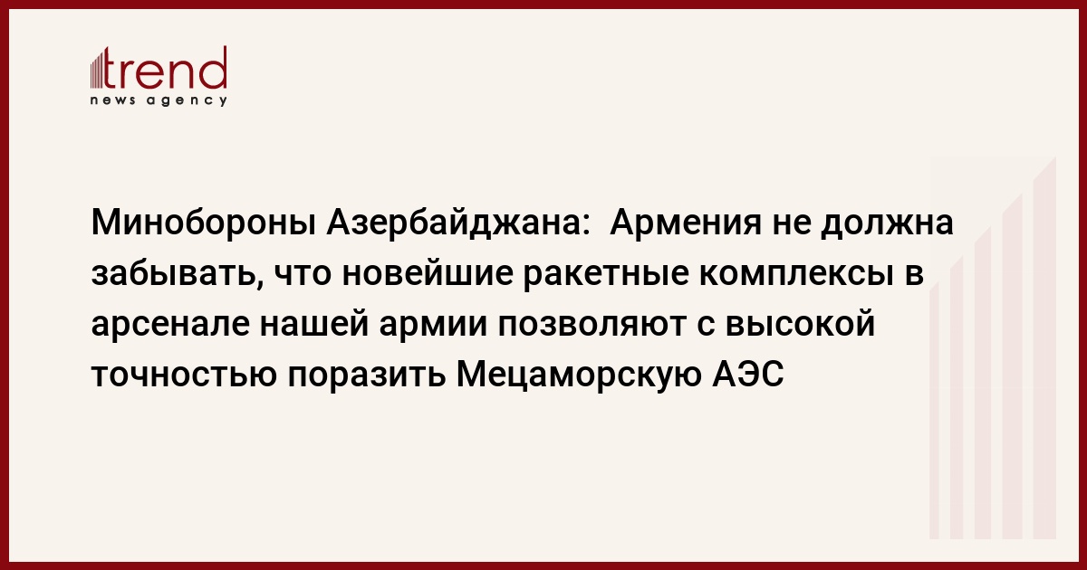 По его словам, Армения не должна забывать, что новейшие ракетные комплексы в арсенале нашей армии позволяют с высокой точностью поразить Мецаморскую АЭС, что может привести к крупной катастрофе для Армении", - сказал Даргяхлы.