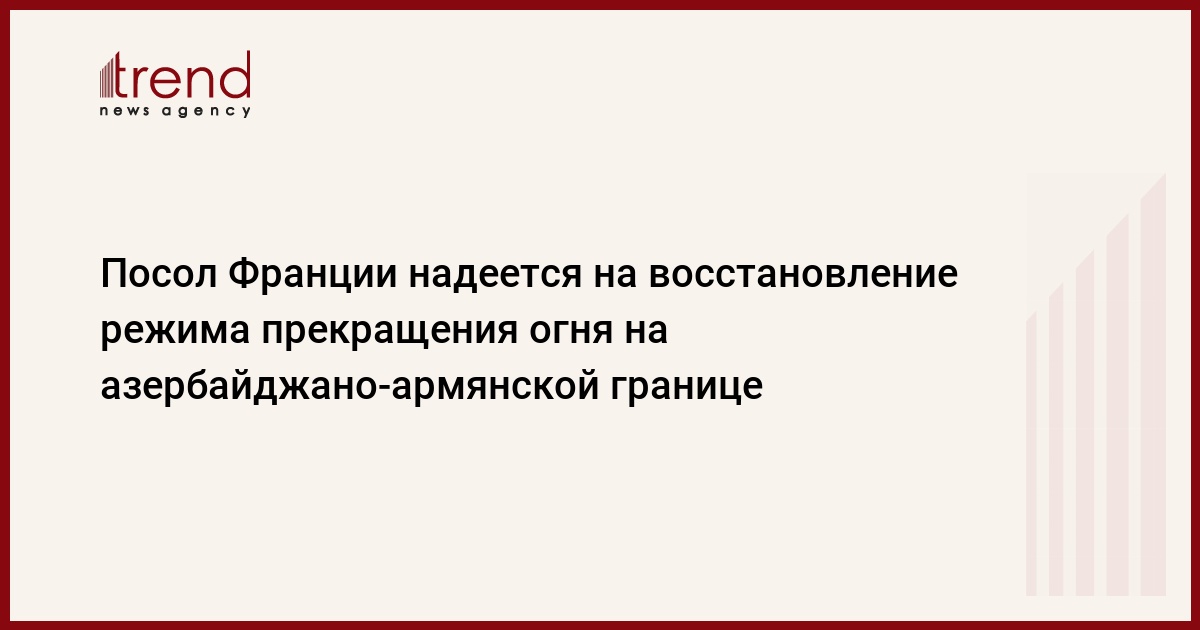 БАКУ/Trend/ - Посол Франции в Азербайджане Закари Гросс надеется на восстановление режима прекращения огня на азербайджано-армянской границе, сообщает в субботу Trend со ссылкой на страницу посла в Твиттер.