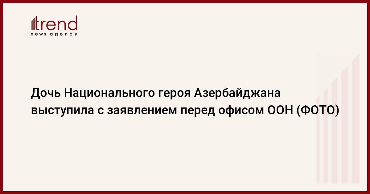 БАКУ /Trend/ - Дочь Национального героя Азербайджана Риада Ахмедова Фариза Ахмедова выступила с заявлением перед головным офисом ООН в Женеве, сообщает в понедельник Trend.