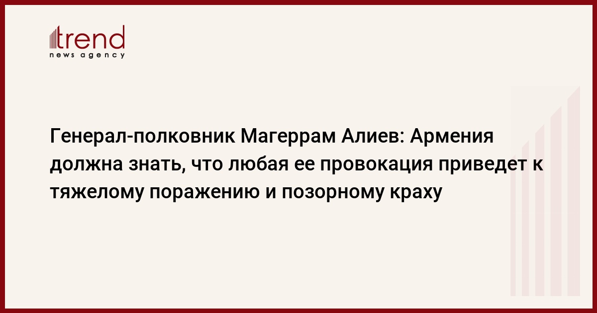 БАКУ /Trend/ - Армения должна знать, что любая ее провокация приведет к тяжелому поражению и позорному краху.