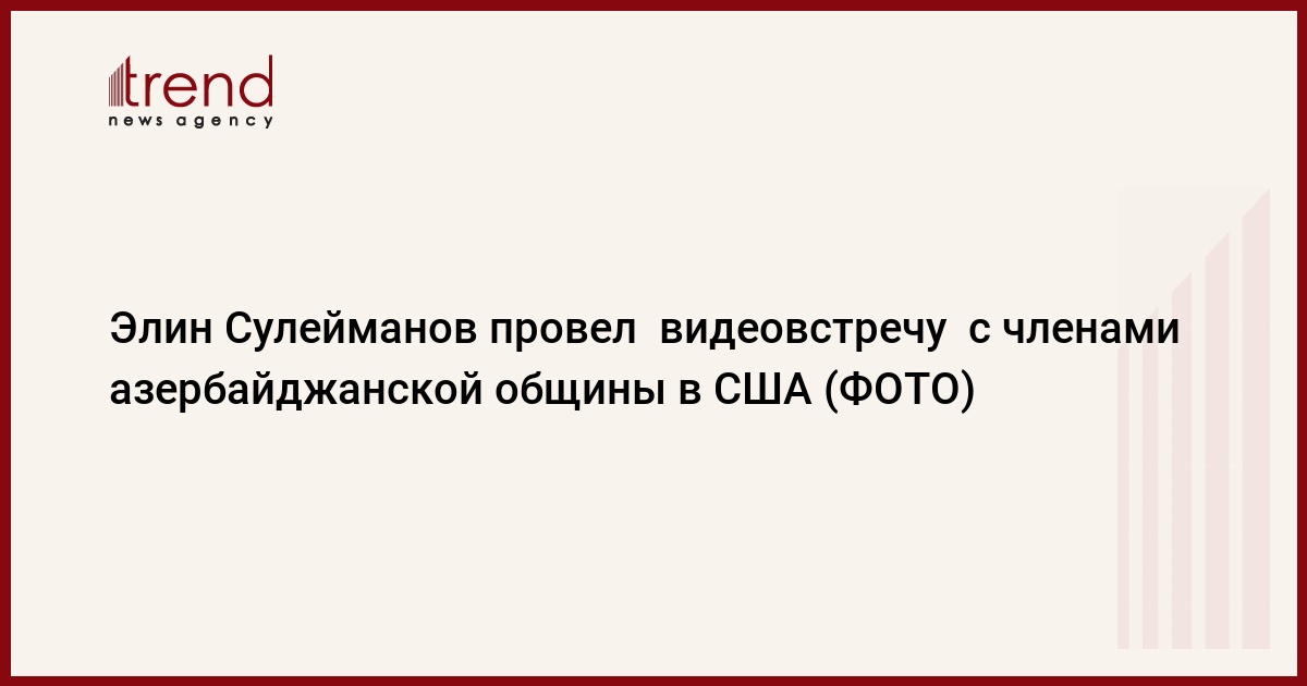 БАКУ /Trend/ - 23 июля по инициативе и приглашению действующего в США Конгресса азербайджанских общин (Congress of Azerbaijani Societies of America - CASA) состоялась видеовстреча посла Азербайджана в США Элина Сулейманова с членами многочисленных общин, проживающих в различных штатах США, сообщает в пятницу Trend со ссылкой на посольство Азербайджана в США.