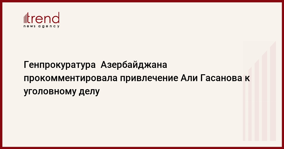 БАКУ /Trend/ - Распространена информация о привлечении бывшего завотделом Администрации Президента Азербайджана Али Гасанова в качестве обвиняемого лица к уголовному делу, возбужденному в связи с правонарушениями в Государственном фонде поддержки развития СМИ и предоставлением квартир журналистам. Отмечается, что была поддержана связь с клиникой в Турции, где находится Али Гасанов, на предмет того, позволяет ли его самочувствие возвращение самолетом. До сведения Гасанова было доведено, что если он в ближайшее время не вернется, то будет объявлен в международный розыск и доставлен в Азербайджан.
