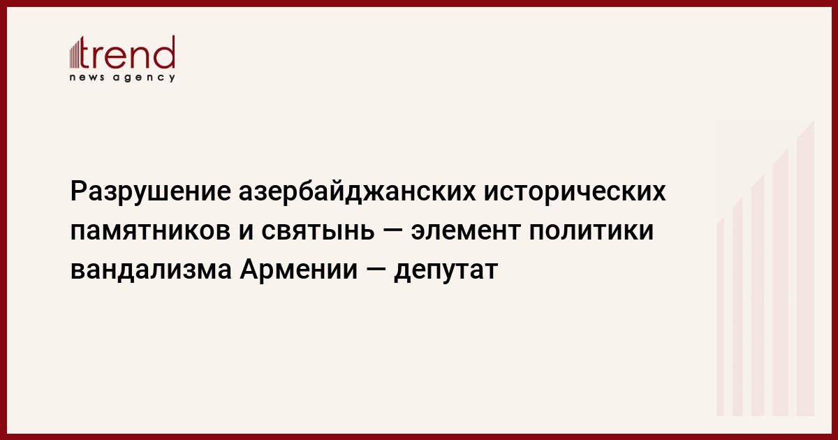 Разрушение принадлежащих нам исторических памятников, святынь, мечетей, кладбищ является составной частью политики вандализма Армении. Сотни наших значимых памятников, расположенные на этих землях, были разрушены армянами. Все это лишний раз доказывает, что бесчеловечность и вандализм являются приоритетом в политике, проводимой Арменией.