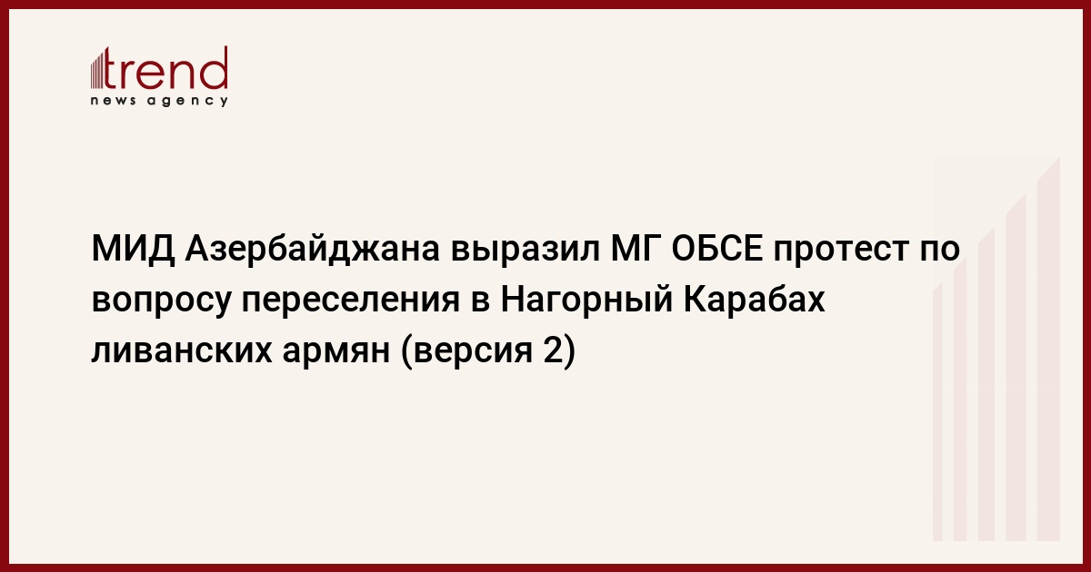 БАКУ /Trend/ - МИД Азербайджана выразил сопредседателям Минской группы ОБСЕ (МГ ОБСЕ) решительный протест по вопросу переселения в Нагорный Карабах ливанских армян, сообщает в понедельник Trend со ссылкой на МИД.