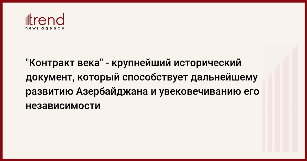 БАКУ /Trend/ - "Контракт века" - это крупнейший исторический документ в истории современного Азербайджана, который способствует дальнейшему развитию страны и увековечиванию его независимости. Если Азербайджан в 1991 году после распада Советского Союза официально объявил о своей независимости, то "Контракт века" был практическим и вечным выражением этой независимости. Потому что Азербайджан всегда был богат углеводородными ресурсами. Доходы от нефти, добытой в советское время, направлялись вовсе не на развитие Азербайджана. А будучи независимой страной, эти ресурсы служат на благосостояние азербайджанского народа.