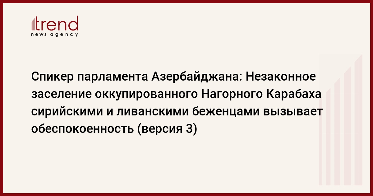 БАКУ /Trend/ - Незаконное заселение оккупированного Нагорного Карабаха сирийскими и ливанскими беженцами вызывает обеспокоенность.