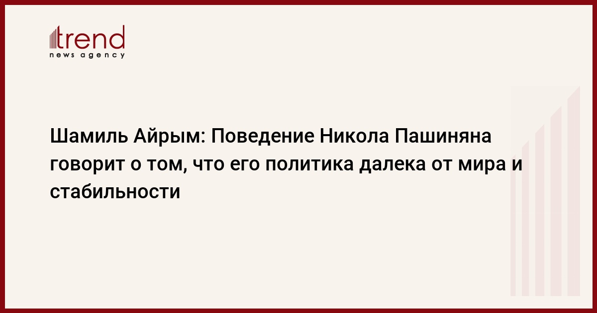 Айрым подчеркнул, что Армения играет в опасную игру, и для изменения демографической ситуации в Нагорном Карабахе незаконно переселяет на оккупированные азербайджанские территории армян из Сирии, Ирака и Ливана: «По последней информации, в оккупированный Нагорный Карабах и семь прилегающих районов переселяют членов террористической организации и наемников, в том числе, членов РПК, И Армения готовит этих убийц к войне с Азербайджаном. Президент Ильхам Алиев заявил, что Армения вооружается, и даже предупредил об этом президента России Владимира Путина. Вооружение поставляется в Армению воздушным путем. И если бы это действительно были стройматериалы, то они поставлялись бы по железной дороге. Все вышеизложенное говорит о неискренности Пашиняна, и очевидно, что он вместе с покровителями ведет подготовку к войне с Азербайджаном».