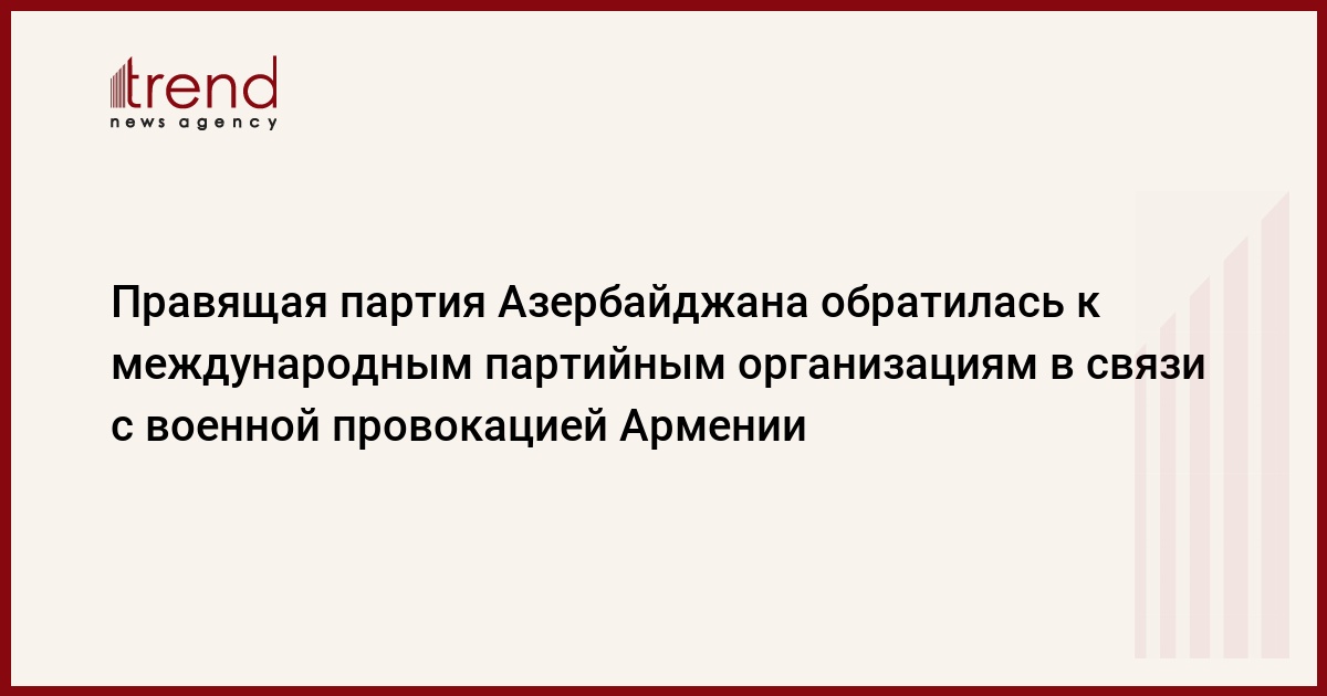 БАКУ /Trend/ - Правящая партия "Ени Азербайджан" (ПЕА) обратилась к международным партийным организациям и политическим партиям-партнерам в связи с очередной военной провокацией вооруженных сил Армении и борьбой армии Азербайджана против армянских оккупантов.