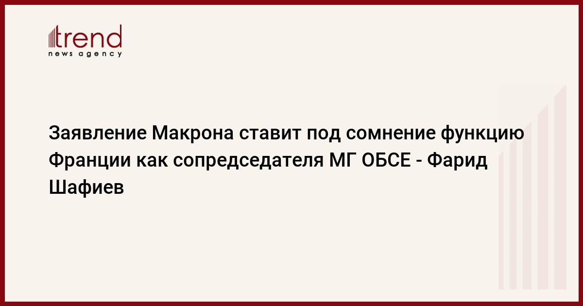 "Заявление Макрона демонстрирует, что, к сожалению, в этот трудный и напряженный период Франция поддерживает позицию Армении. Это ставит под серьезное сомнение функцию Франции как сопредседателя Минской группы ОБСЕ", - сказал Шафиев.