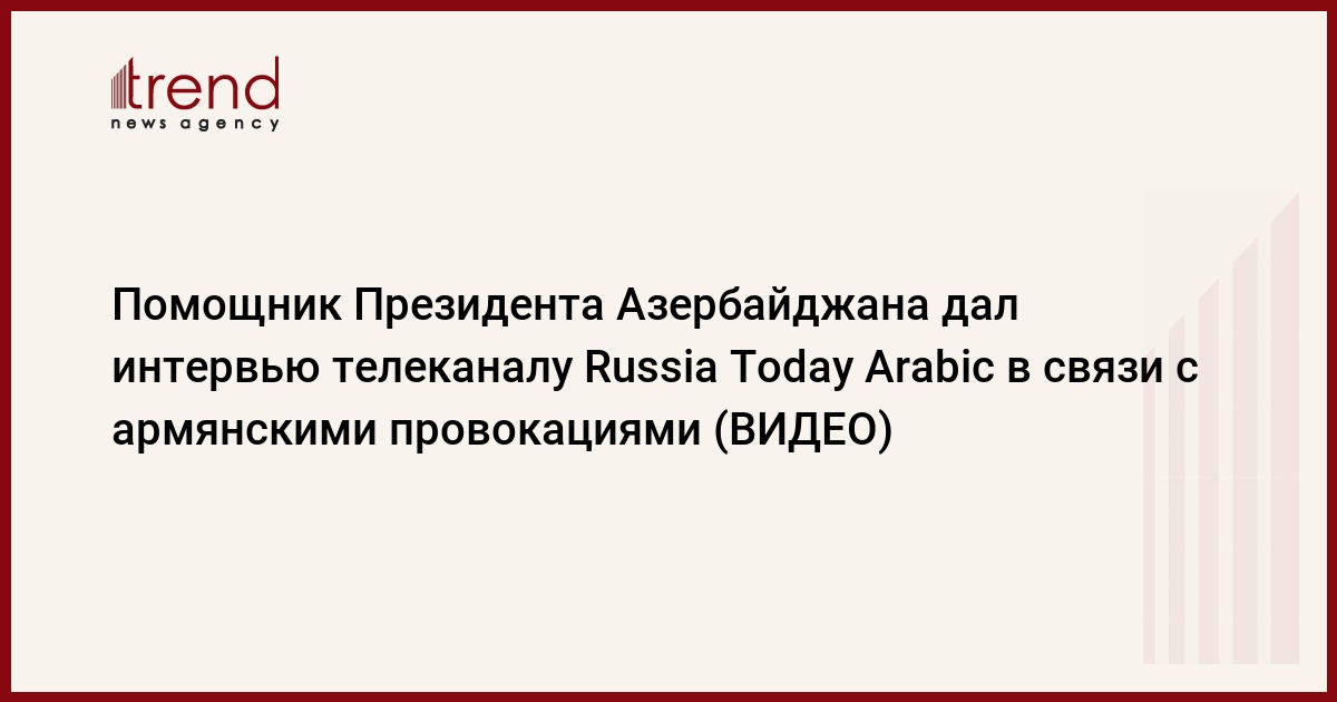 БАКУ /Trend/ - Помощник Президента Азербайджана – заведующий отделом по вопросам внешней политики Администрации Президента Хикмет Гаджиев дал интервью телеканалу Russia Today Arabic в связи с последними провокациями Армении.