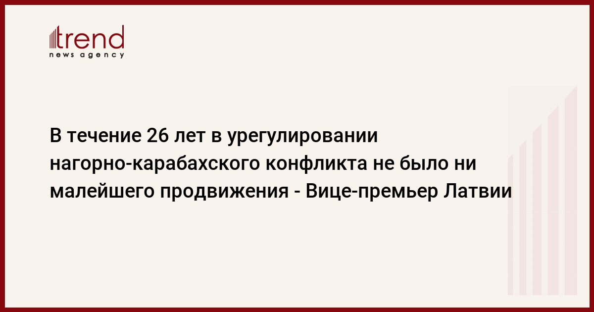 "Если конкретно говорить о конфликте на Южном Кавказе, могу сказать, что наш МИД четко изложил позицию Латвии о том, что обе стороны должны сесть за стол переговоров и решить вопрос мирным путем. Однако реальность такова, что за 26 лет в направлении урегулирования нагорно-карабахского конфликта не было достигнуто ни малейшего продвижения. Как латвийская сторона, мы остаемся приверженными мирному урегулированию любого конфликта, а также принципу неприкосновенности признанных на международном уровне границ государств. Нынешние военные действия де-юре ведутся на территориях Азербайджана.