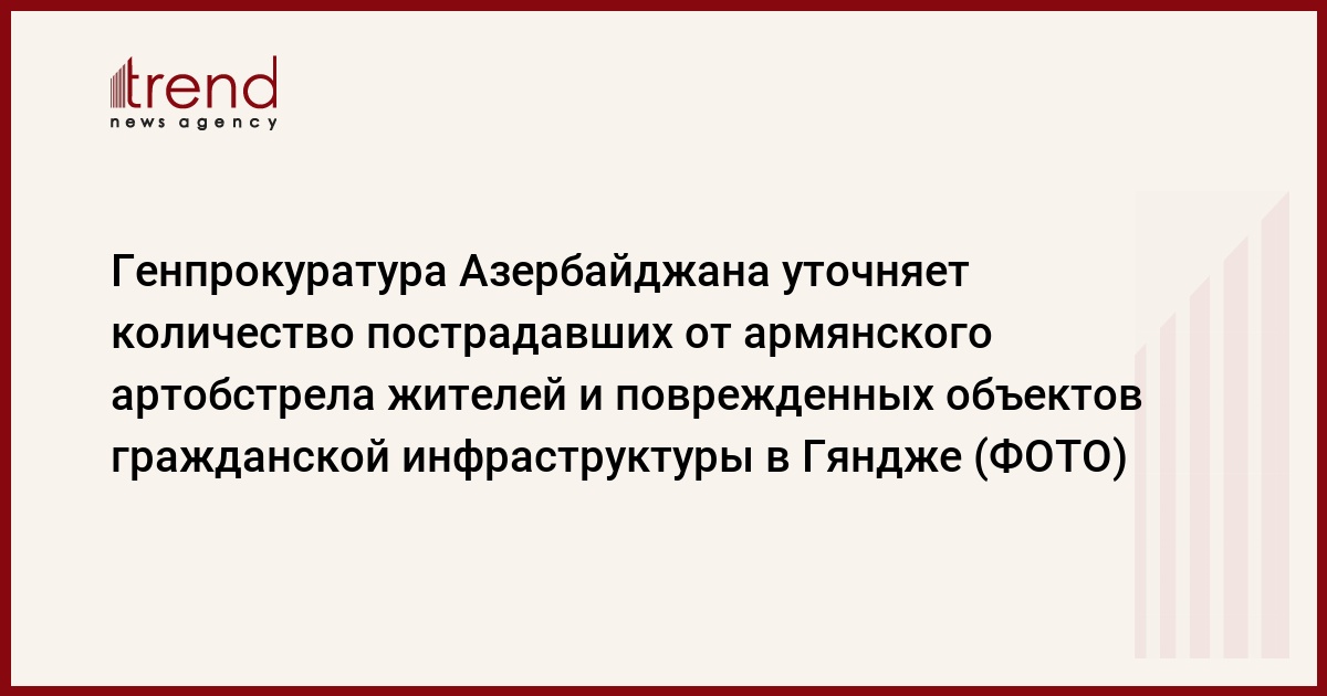 БАКУ /Trend/ - Начиная с 10:00 четвертого октября 2020-го года, вооруженные силы оккупантской Армении, грубо нарушая нормы и принципы международного права, положения Женевских конвенций 1949 года и дополнительных протоколов к ним, решения и резолюции Совета Безопасности ООН, подвергли тяжелому артиллерийскому обстрелу не относящийся к региону ведения боевых действий второй по величине город Азербайджана Гянджу, намеренно целясь в мирное население Азербайджана.