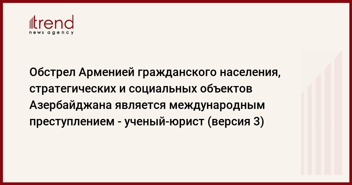 БАКУ /Trend/ - Обстрел армянскими вооруженными силами гражданского населения Азербайджана, а также Мингячевирской ГЭС, трубопровода Баку-Тбилиси-Джейхан (БТД), имеющего важное значение в обеспечении энергетической безопасности Европы, других гражданских объектов Азербайджана считается международным преступлением.