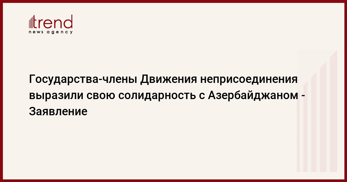 Государства-члены Движения неприсоединения заявляют о своей твердой поддержке независимости, суверенитета и территориальной целостности Азербайджанской Республики и выражают свою солидарность с Азербайджанской Республикой в соответствии с принципиальной позицией Движения неприсоединения.
