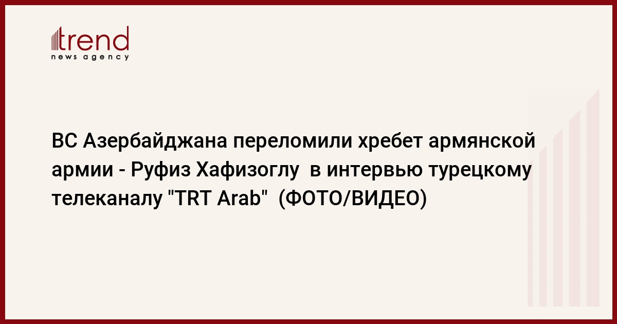 Во время выступления по турецкому телеканалу "TRT Arab" главный редактор АМИ Trend Руфиз Хафизоглу сказал, что ВС Азербайджана переломили хребет армянской армии.