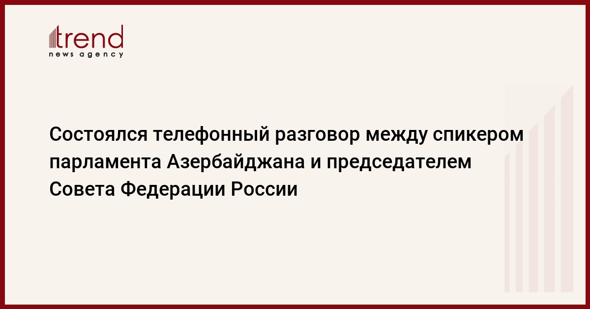 БАКУ /Trend/ - Между председателем Милли Меджлиса (парламента) Азербайджана Сахибой Гафаровой и председателем Совета Федерации Федерального собрания России Валентиной Матвиенко состоялся телефонный разговор, сообщает во вторник Trend со ссылкой на парламент.