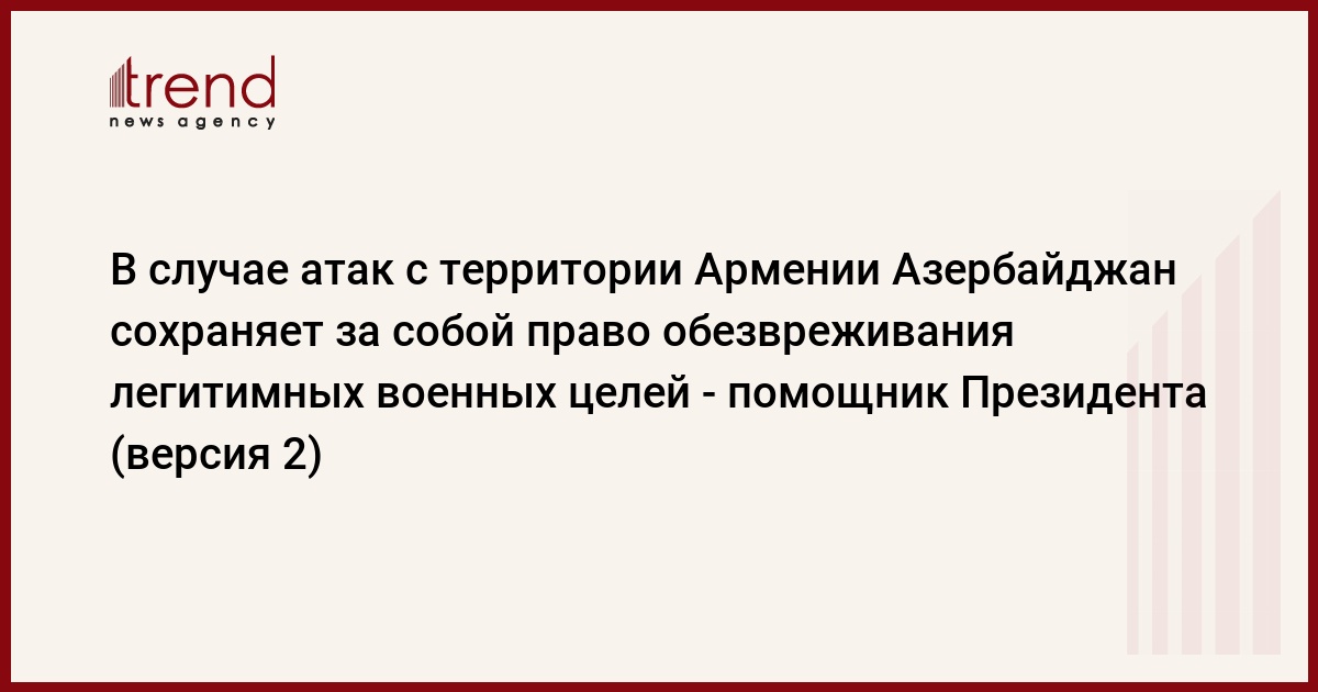 БАКУ /Trend/ - В случае атак с территории Армении Азербайджан сохраняет за собой право обезвреживания легитимных военных целей.