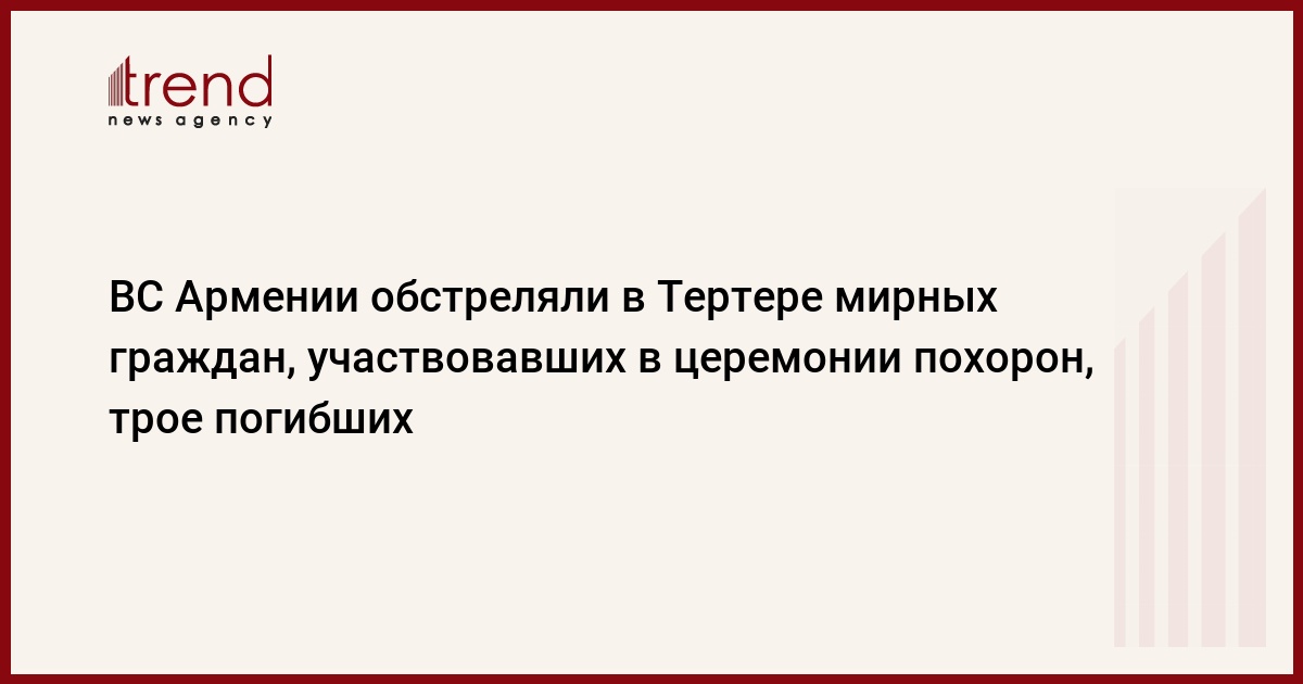 ТЕРТЕР /Trend/ - ВС Армении подвергли артиллерийскому обстрелу мирных азербайджанских граждан, которые участвовали в церемонии похорон местного жителя на городском кладбище в Тертере.
