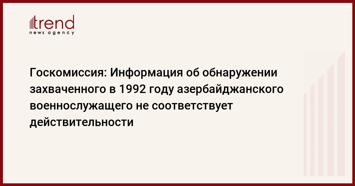 Об этом сообщает Trend со ссылкой на Государственный комитет по делам пленных, заложников и пропавших без вести граждан Азербайджана.