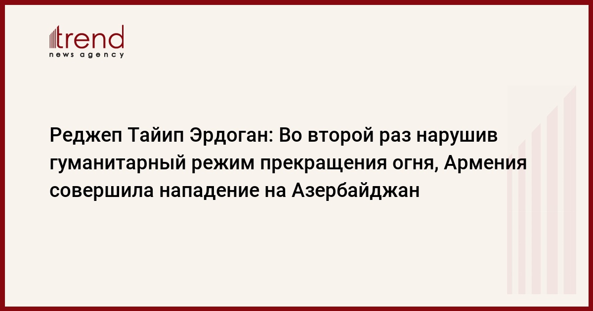 Глава Турецкого государства подчеркнул, что несмотря на объявление гуманитарного режима прекращения огня во второй раз, Армения вновь атаковала Азербайджан: "Европа все еще молчит, но Турция молчать не будет. Мы за справедливость и с теми - кто прав".