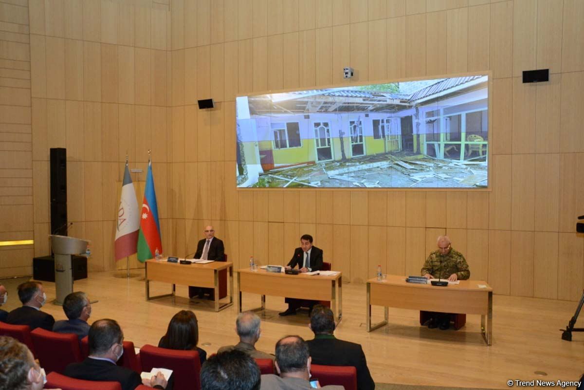 В брифинге участвуют представители дипломатического корпуса зарубежных стран. Официальные лица информируют их о последних провокациях Армении.