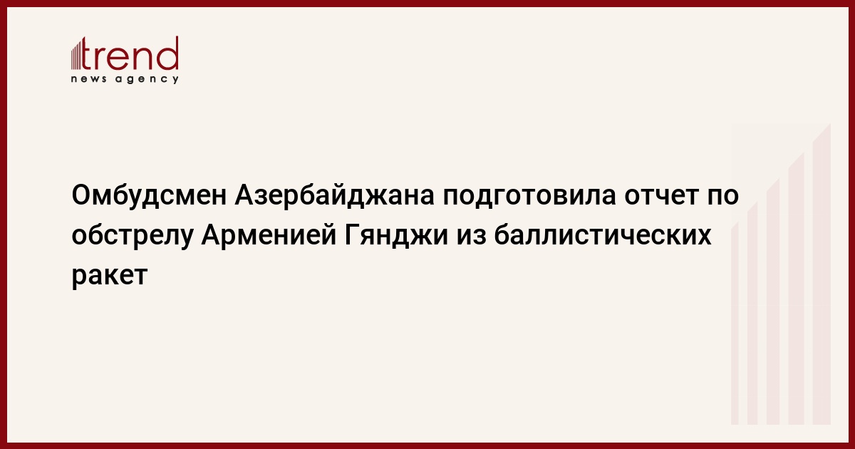 БАКУ /Trend/ - Уполномоченная по правам человека (омбудсмен) Азербайджана подготовила отчет в связи с многочисленными человеческими жертвами, ранениями мирных жителей, разрушениями вызванными в результате обстрела Арменией Гянджи из баллистических ракет.