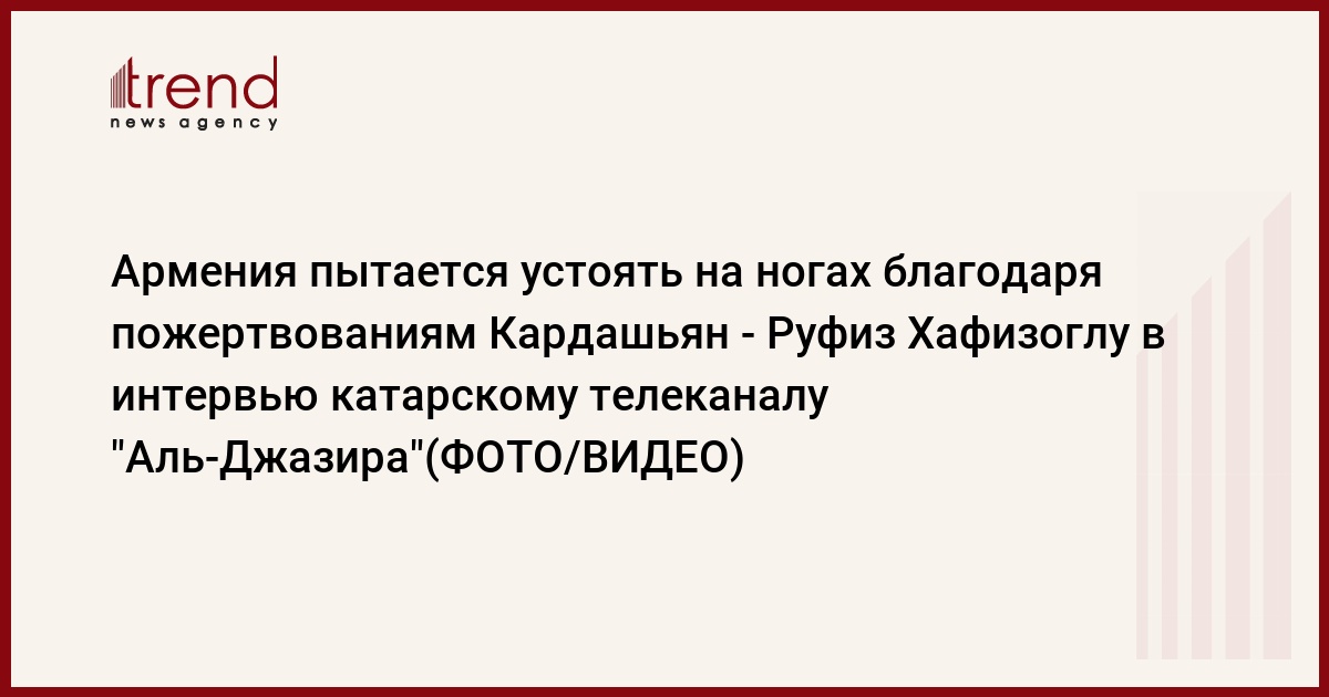 В ходе выступления на катарском телеканале "Аль Джазира" главный редактор АМИ Trend Руфиз Хафизоглу сказал, что неверно сравнивать экономически сильный Азербайджан и Армению, пытающуюся устоять на ногах благодаря пожертвованиям Кардашьян.
