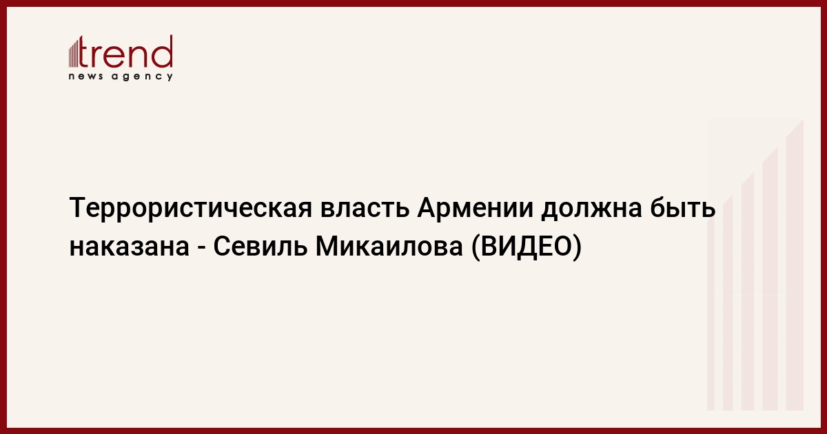 БАКУ /Trend/ - Депутат Милли Меджлиса (парламент) Азербайджана Севиль Микаилова дала интервью турецкому телеканалу "TRT World" в связи с террористическими действиями Армении против гражданского населения Гянджи, сообщает в среду Trend.