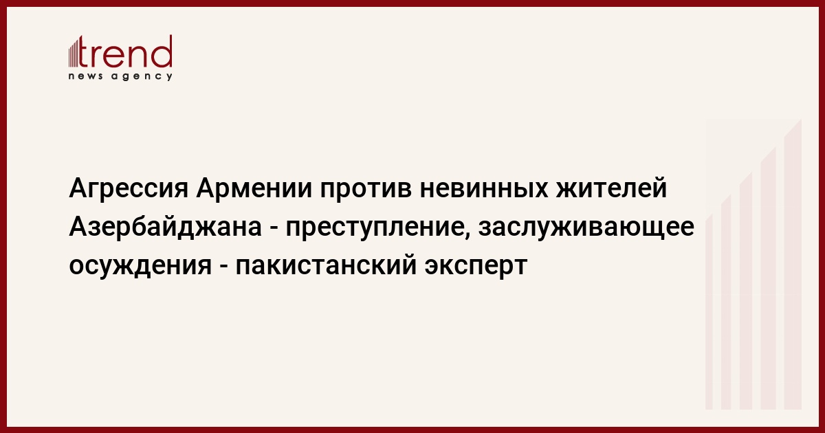 БАКУ /Trend/ - Продолжающаяся агрессия армянских войск против невинных жителей Азербайджана является преступлением, заслуживающим осуждения, сказал Trend главный редактор пакистанской газеты Daily Islamabad Post Ансар Бхатти, комментируя обстрел мирного населения Азербайджана.