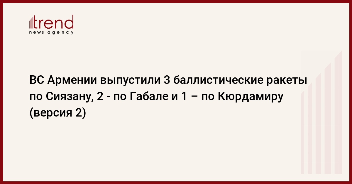 ВС Армении около 07:00 выпустили 3 ракеты в направлении Сиязаньского района, около 09:00 – две ракеты по Габалинскому и одну ракету – по Кюрдамирскому району.