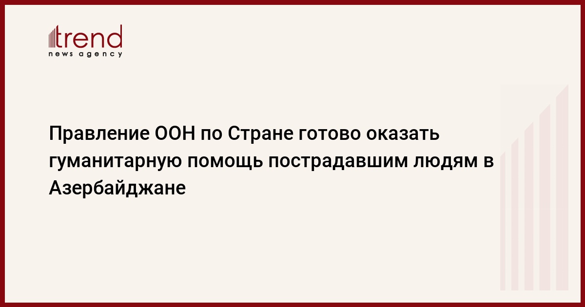 Кроме того, была отмечена важность обсуждения инициативы Правления ООН по Стране по оказанию Азербайджану гуманитарной помощи в ряде сфер. В Правлении ООН по Стране сообщили, что в целях оценки нужд пострадавших людей в Азербайджане, поддержки усилия Правительства в направлении оказания им поддержки в связи с известными событиями Правление готово оказать соответствующую гуманитарную помощь.