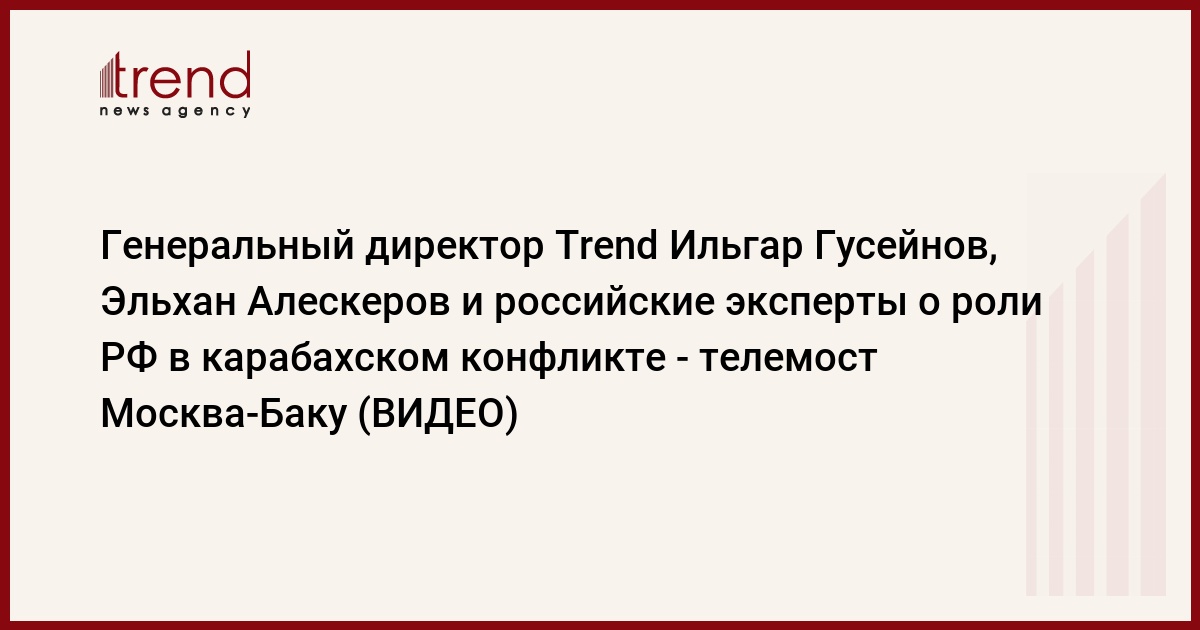 БАКУ /Trend/ - Генеральный директор МИА Trend Ильгар Гусейнов, директор экспертного совета Baku Network Эльхан Алескеров, эксперт международного дискуссионного клуба "Валдай" Фархад Ибрагимов, а также ведущий аналитик "Вестника Кавказа" Матвей Катков, в рамках информационно-аналитической программы "Война и мир" агентства "Вестник Кавказа" приняли участие в видеомосте между Москвой и Баку и поговорили об освобождении Зангилана, о том, как менялось отношение мирового сообщества к проблеме урегулирования конфликта в Нагорном Карабахе, а также о роли России в данном процессе.
