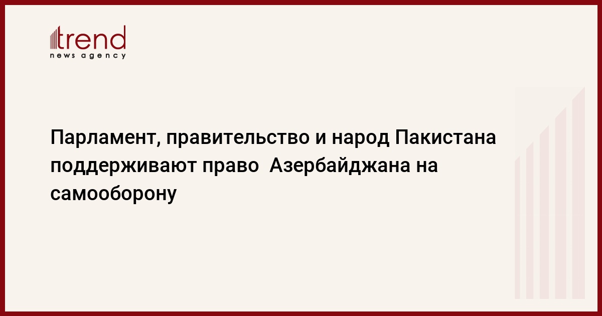 Парламент, правительство и народ Пакистана поддерживают право на самооборону братского азербайджанского народа: "Пакистан и дальше будет поддерживать позицию Азербайджана, опирающегося на резолюции СБ ООН по урегулированию нагорно-карабахского конфликта.