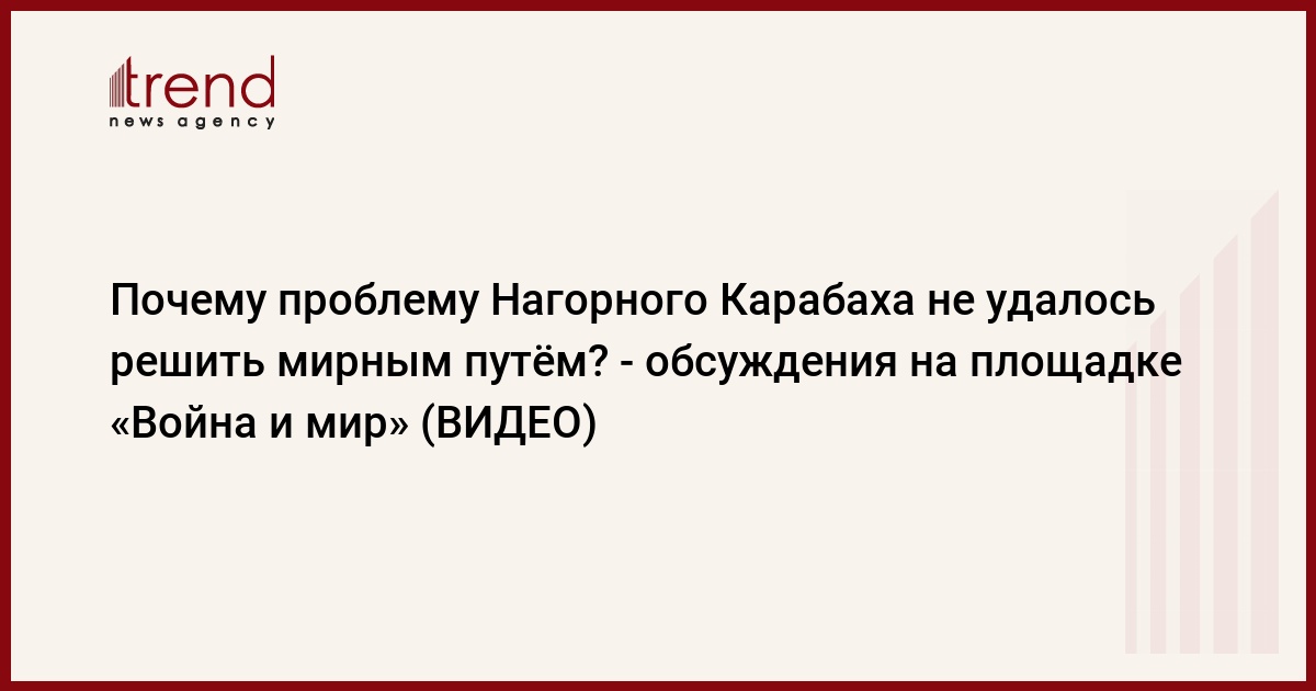 БАКУ/Trend/ - В рамках информационно-аналитической программы "Война и мир", которая является совместным проектом АМИ Trend и «Вестника Кавказа», азербайджанские и российские эксперты поговорили о том, почему проблему Нагорного Карабаха не удалось решить мирным путём.