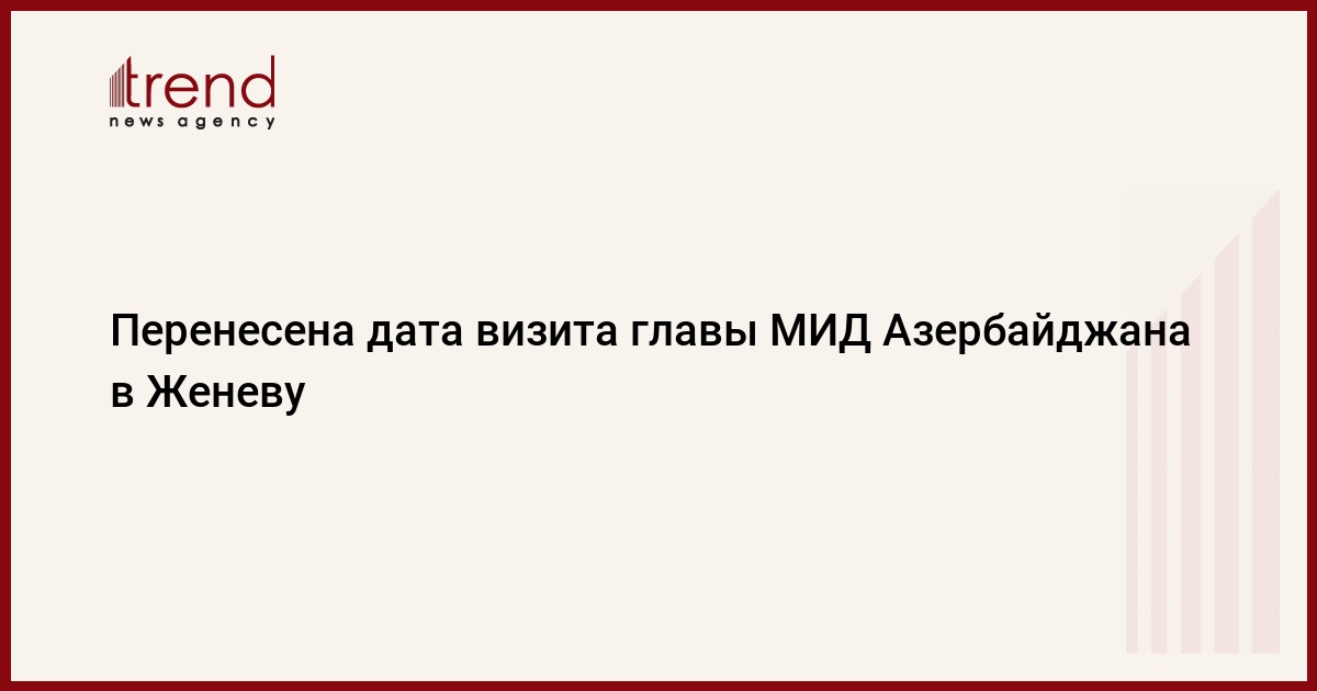 БАКУ /Trend/ - Визит министра иностранных дел Азербайджана Джейхуна Байрамова в Женеву перенесен, сообщает в четверг Trend со ссылкой на главу пресс-службы МИД Азербайджана Лейлу Абдуллаеву.