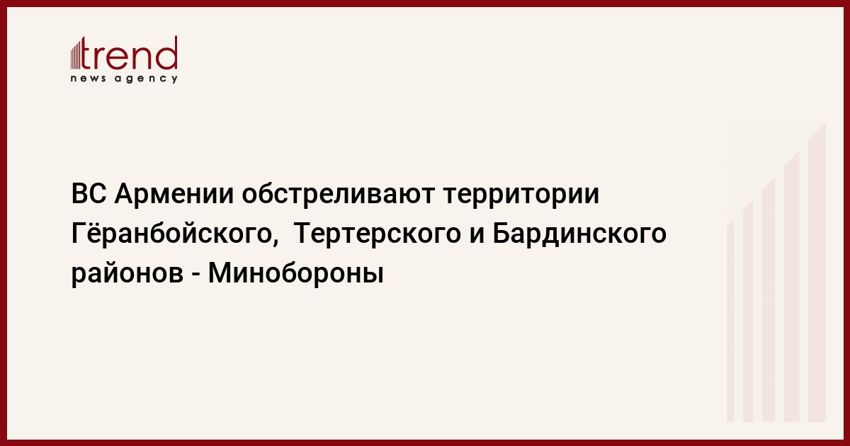БАКУ /Trend/ - Продолжая грубо нарушать гуманитарный режим прекращения огня, ВС Армении подвергают артиллерийскому обстрелу территории Гёранбойского, Тертерского и Бардинского районов, сообщает в четверг Trend со ссылкой на Минобороны.
