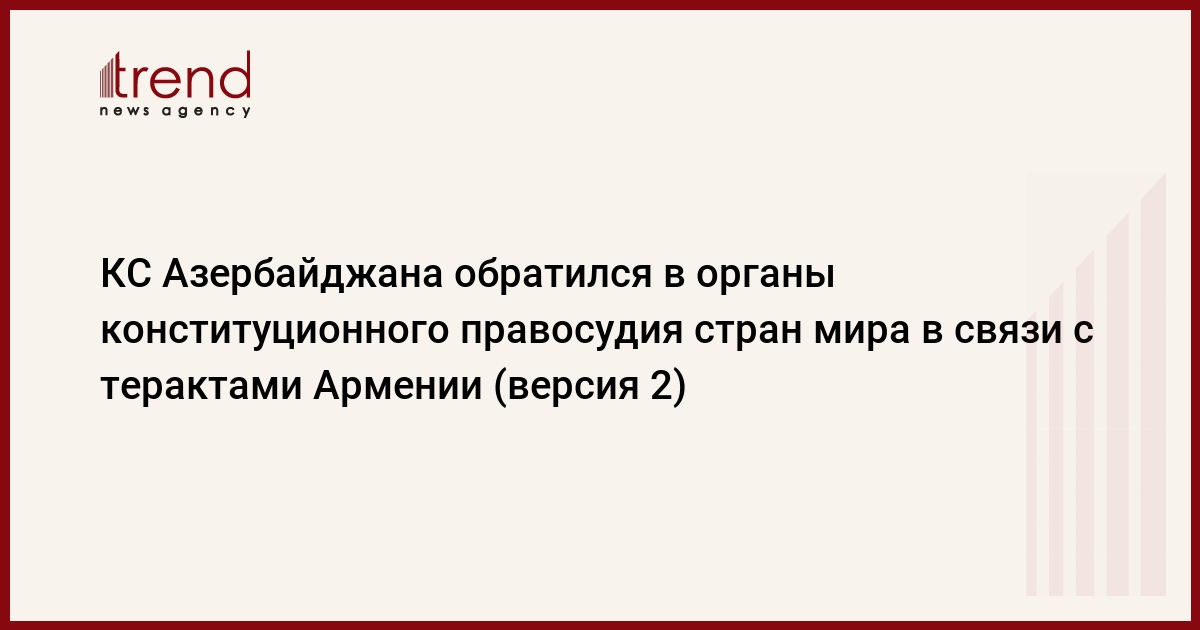 БАКУ /Trend/ - Конституционный суд (КС) Азербайджана обратился в органы конституционного правосудия мировых стран в связи с терактами, совершенными военно-политическим руководством Армении в отношении города Барда 27 и 28 октября 2020 года, сообщает в пятницу Trend со ссылкой на Конституционный суд.