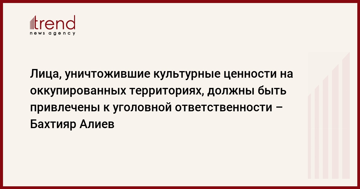 Бахтияр Алиев подчеркнул, что по мере того, как села, поселки и города освобождаются от оккупации, мы видим, в каком разрушенном состоянии они находятся: « Уничтожены культурные ценности. Считаю, что должно быть проведено документирование по этому вопросу, возбуждены уголовные дела, и все, кто причастен к этим преступлениям, должны быть привлечены к уголовной ответственности».