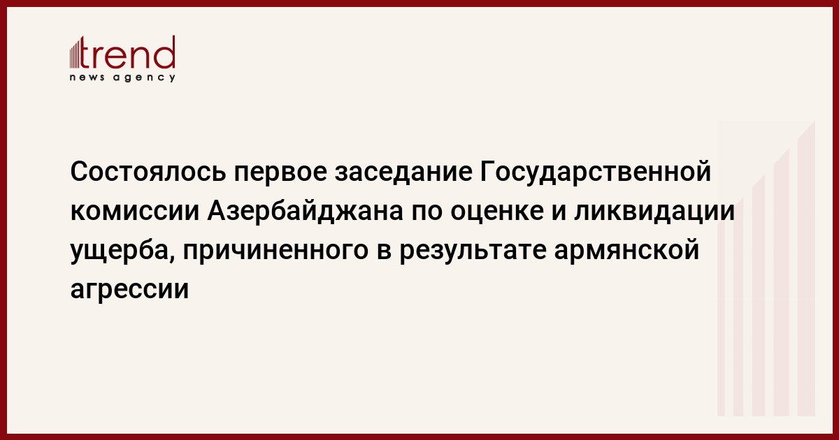 БАКУ /Trend/ - Сегодня состоялось первое заседание Государственной комиссии, созданной распоряжением Президента Азербайджана "О мерах по оценке и ликвидации ущерба, причиненного гражданскому населению, государственному имуществу, в том числе инфраструктурным объектам, а также субъектам предпринимательской деятельности в результате начавшейся с 27 сентября 2020 года агрессии вооруженных сил Республики Армения против территории Азербайджанской Республики".