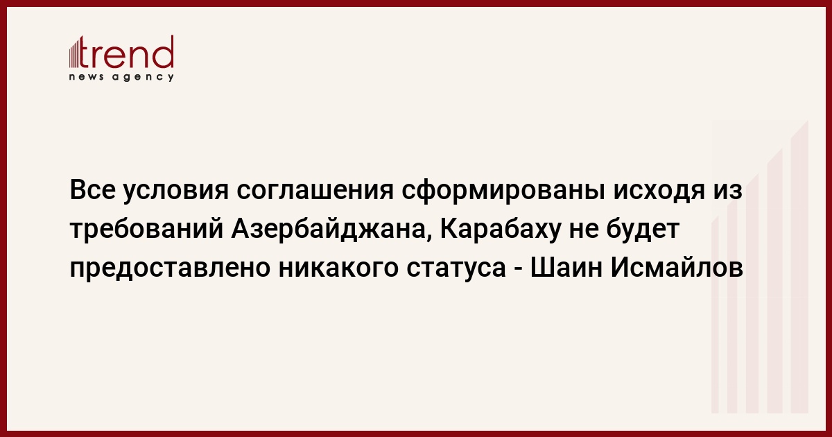 "Все условия соглашения сформированы исходя из требований Азербайджана. Карабаху не будет предоставлено никакого статуса. Турецкие миротворцы также будут вовлечены в процесс, и даже будет установлено наземное сообщение с Нахчываном. По сути, это капитуляция Армении. Мир увидел силу Азербайджана, решимость нашего Верховного Главнокомандующего, азербайджанская армия переписала историю, кровь шехидов не осталась не отомщенной. Славься Азербайджан !!! Карабах - это Азербайджан!!!", - сказал Исмайлов.