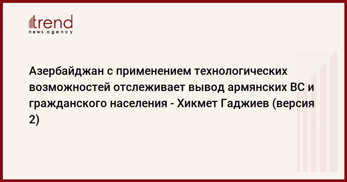 БАКУ /Trend/ - Азербайджан с применением технологических возможностей отслеживает процесс вывода армянских вооруженных сил и гражданского населения.