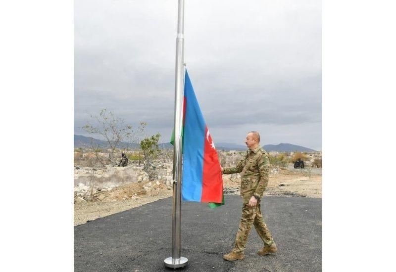 БАКУ /Trend/ - Президент Азербайджана Ильхам Алиев в ходе совместной с Первой леди Мехрибан Алиевой поездки в Агдам поднял флаг Азербайджана в Агдаме, сообщает Trend.