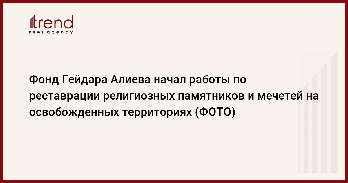 Напомним, что Фонд Гейдара Алиева приступил к реализации проекта по восстановлению религиозных памятников и мечетей на территории Карабаха, являющихся национальным достоянием азербайджанского народа. В рамках проекта с участием местных и зарубежных специалистов будут выполнены работы по восстановлению, консервации и реконструкции наших святынь в регионе. Уже начаты соответствующие работы по восстановлению религиозных мест поклонения в городе Шуша и Агдамском районе, разрушенных в годы оккупации.
