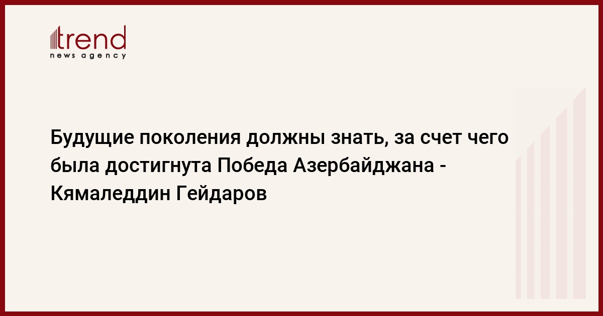"Мы всегда должны быть благодарны великому лидеру Гейдару Алиеву. Политика, основы которой он заложил, продолжается и сегодня. Будущие поколения, народ Азербайджана и спустя тысячелетия не должны забывать эту историю. Они должны знать, за счет чего была достигнута эта победа. Она была завоевана за счет долгосрочной стратегии, экономики, военной мощи и мудрой политики Азербайджана. Да упокоит Всевышний душу великого лидера Гейдара Алиева", - сказал Гейдаров.