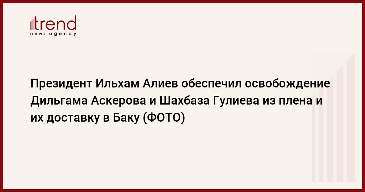 БАКУ /Trend/ - Азербайджанские пленные и взятые в заложники армянами Шахбаз Гулиев и Дильгам Аскеров были возвращены на Родину.