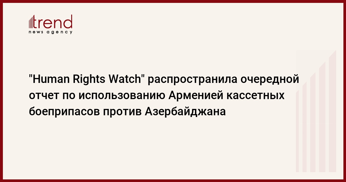 БАКУ /Trend/ - Организация "Human Rights Watch" распространила очередной отчет по расследованиям, проведенным в связи с ракетными атаками армянских вооруженных сил против мирного населения и гражданских объектов Азербайджана, сообщает во вторник Trend.