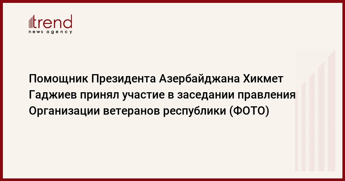 Хикмет Гаджиев довел до внимания, что перед Организацией ветеранов республики стоят серьезные задачи, подчеркнул важность усиления деятельности структуры на местах, изучения проблем, беспокоящих ветеранов, и доведения их до внимания международных структур, расширения связей с международными организациями ветеранов, изучения и применения международного опыта в сфере работы с ветеранами.