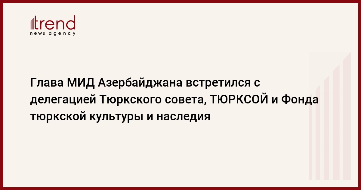 БАКУ /Trend/ - Министр иностранных дел Азербайджана Джейхун Байрамов 18 января принял делегацию в составе генсека Тюркского совета Багдада Амреева, генсека ТЮРКСОЙ Дусена Касеинова и президента Фонда тюркской культуры и наследия Гюнай Эфендиевой.