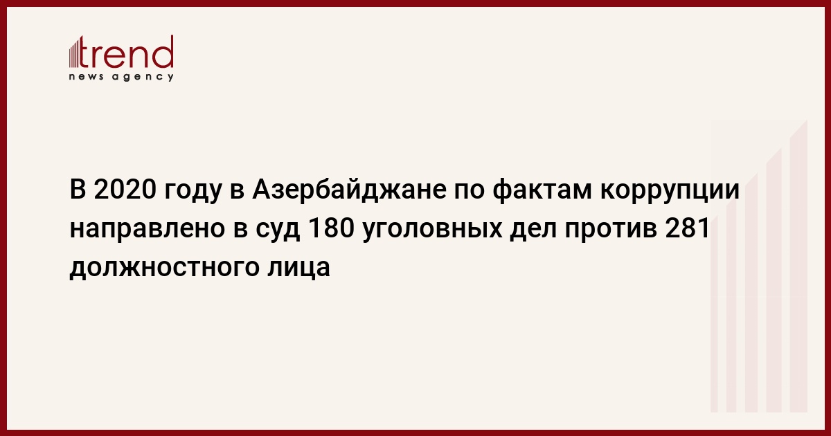 БАКУ /Trend/ - Главное управление по борьбе с коррупцией при Генеральном прокуроре Азербайджана завершило предварительное расследование 180 уголовных дел против 281 должностного лица и направило их в суд для рассмотрения.
