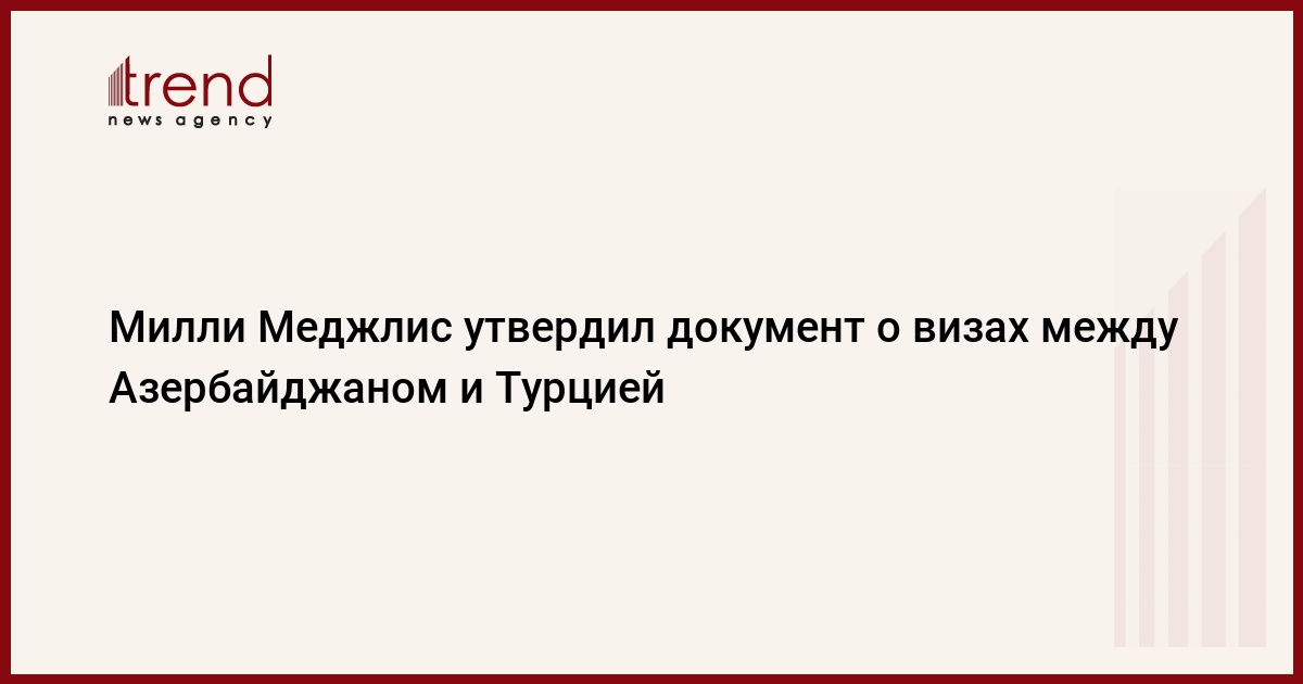 БАКУ /Trend/ - Милли Меджлис утвердил документ о визах между Азербайджаном и Турцией, сообщает в понедельник Trend.